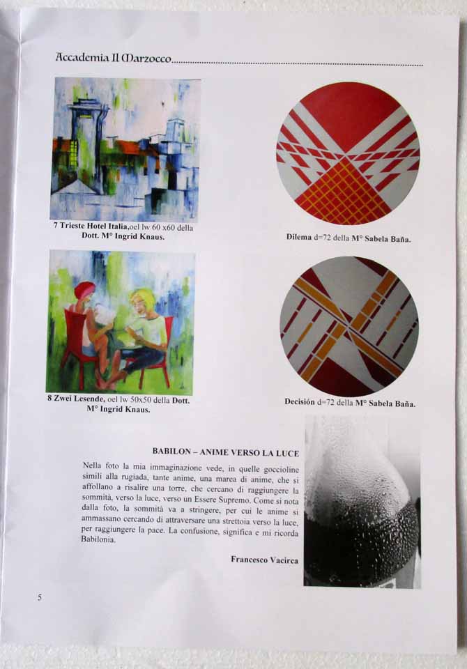 Accademia Il Marzocco. Periodico di Arte, Cultura, Scienza. Rassegna Internazionale di Arti Visive e di Poesia „Stoccolma 2019“ con Gran Premio „Coppa Europa“. Hrsg. v. Accademia Culturale Il Marzocco di Carolina Mazzetti, Carmelia Rotundo, I- Vada- Livorno, Anno 2, n 5/2019, September, Oktober 2019, I.K,.2  Abb. S.6.