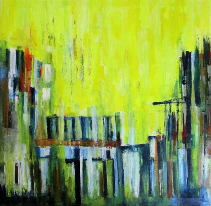 fwbd7,64, View to Battignano, oil on canvas, 50 x 60 cm. I was thinking of Mediterranean fields in the strong sunlight, on the slopes of gentle hills, with a few houses below the tops, between tall green plants and trees, maybe cypresses or olives. The names of particular villages often sound so inviting that I really want to see what it looks like there.